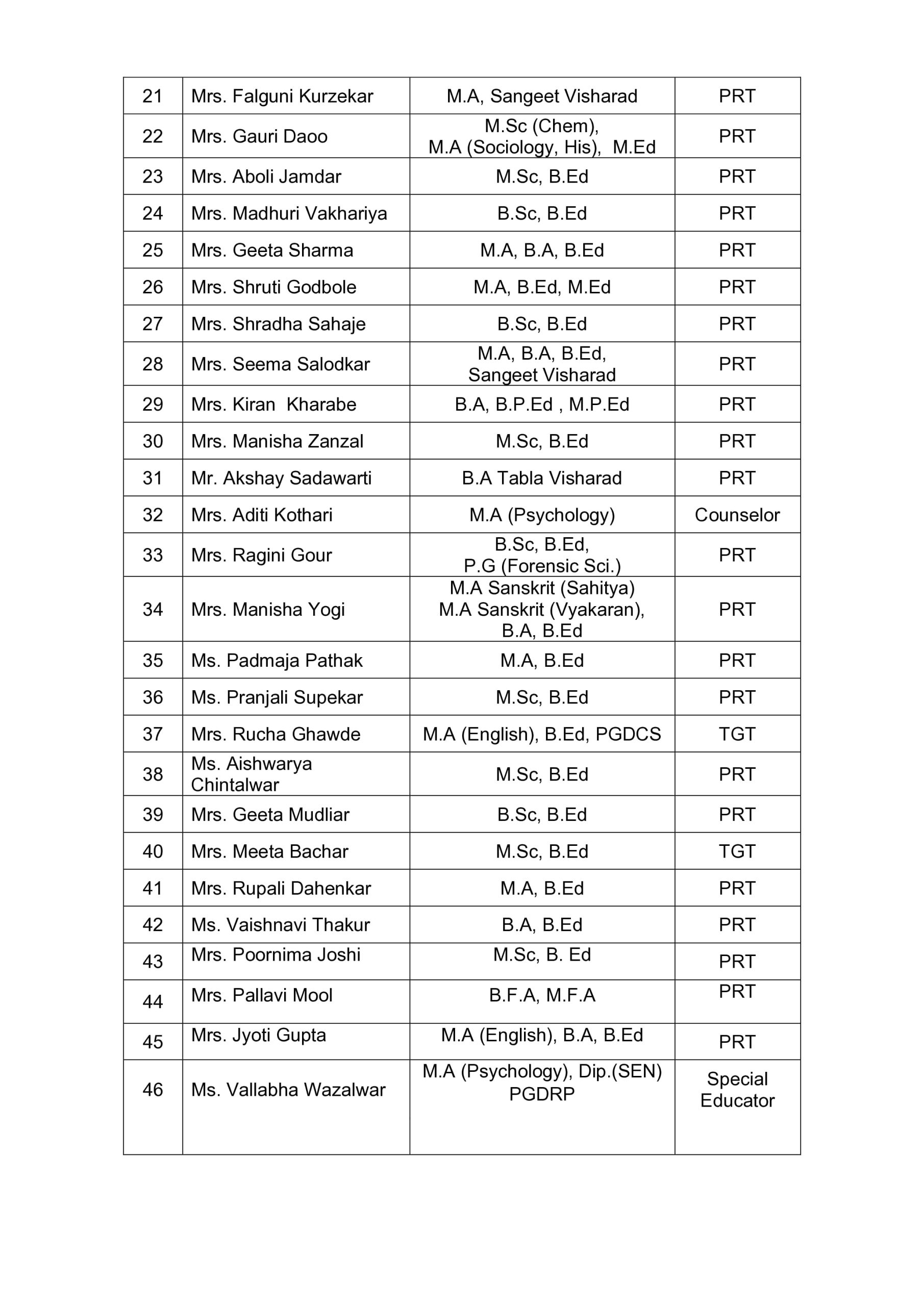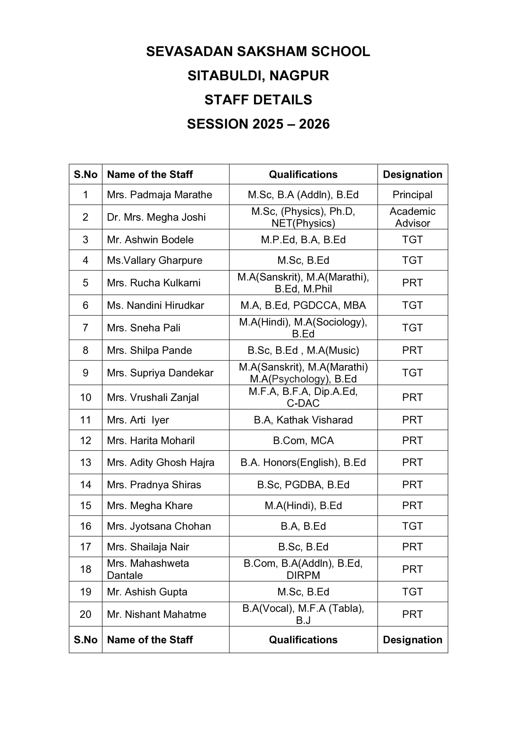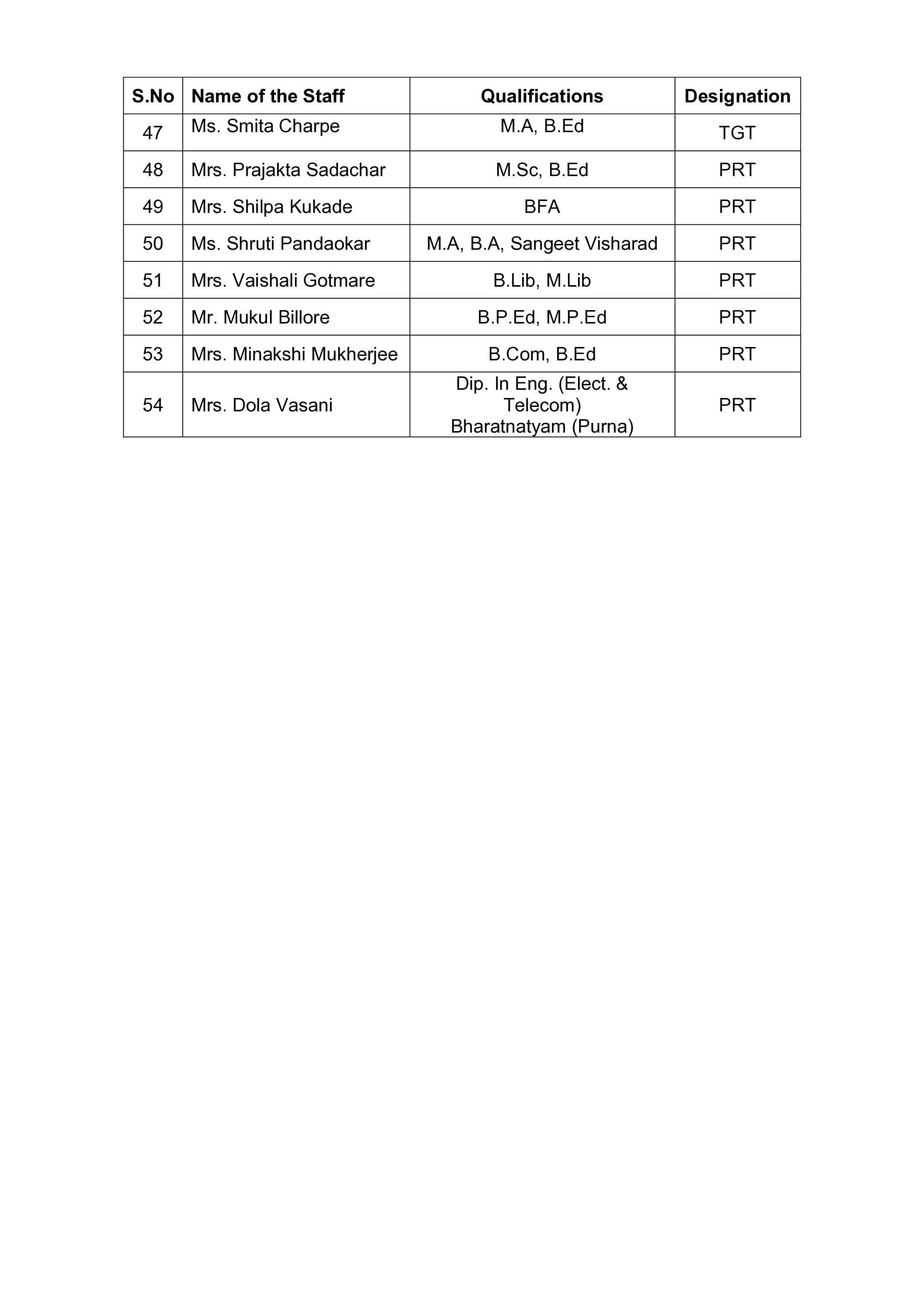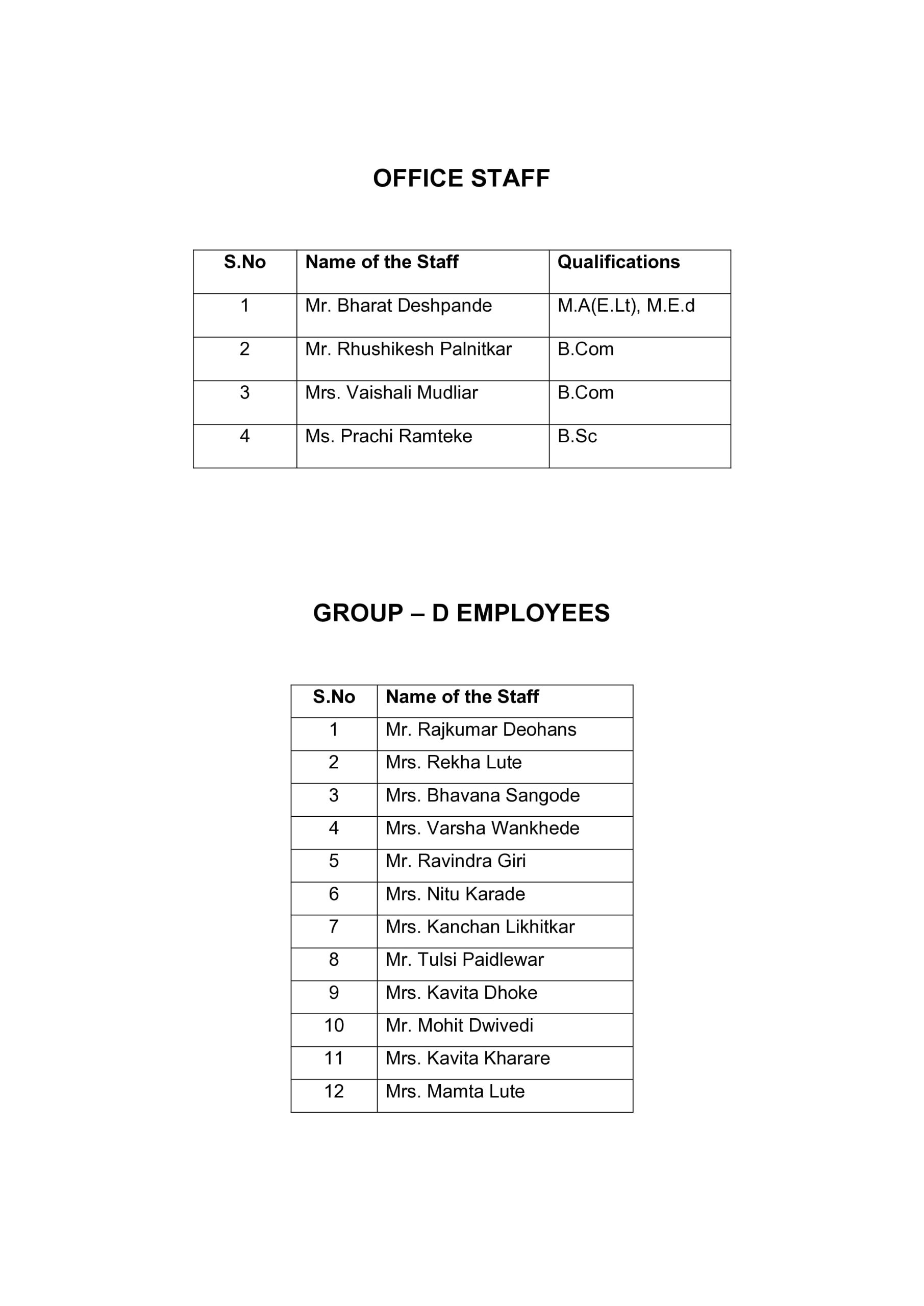 Staff Details